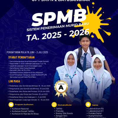Dalam rangka menyambut Tahun Ajaran Baru 2025/2026, UPT SMP Negeri 2 Batusangkar melaksanakan Penerimaan Murid Baru (SPMB) dengan mengacu pada regulasi terbaru,