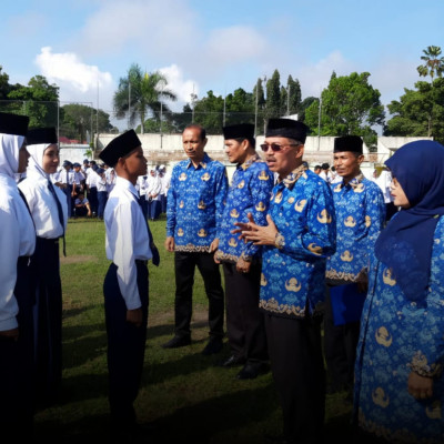 Dibanding kemaren, hari ini kegiatan di UPT SMPN 2 Batusangkar terlihat lebih sibuk. Sejak pagi guru sudah berbagi tugas pembelajaran,
