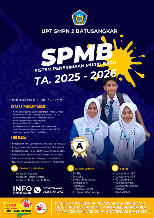 SISTEM PENERIMAAN MURID BARU (SPMB) UPT SMP NEGERI 2 BATUSANGKAR TAHUN AJARAN 2025/2026